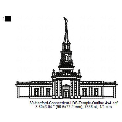 Hartford Connecticut LDS Temple Outline Machine Embroidery Digitized Design Files