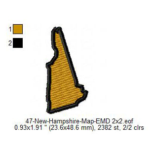 New Hampshire State Map Machine Embroidery Digitized Design Files
