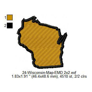 Wisconsin State Map Machine Embroidery Digitized Design Files