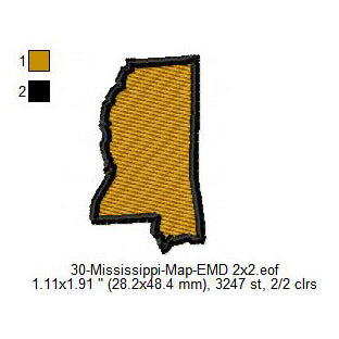 Mississippi State Map Machine Embroidery Digitized Design Files