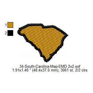 South Carolina State Map Machine Embroidery Digitized Design Files