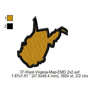 West Virginia State Map Machine Embroidery Digitized Design Files