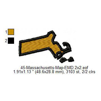 Massachusetts State Map Machine Embroidery Digitized Design Files