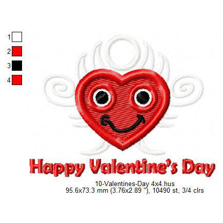 Happy Valentines Day Heart Shaped Cartoon Machine Embroidery Digitized Design Files