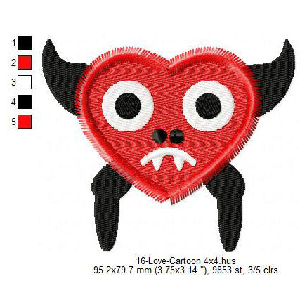 Love Heart Cartoon Valentines Day Machine Embroidery Digitized Design Files