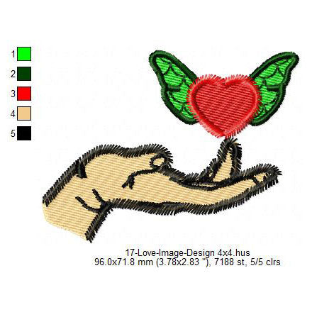 Flying Heart Love Butterfly From Hand Valentines Day Machine Embroidery Digitized Design Files
