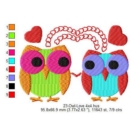 Couple Owl Bird Making Love Valentines Day Machine Embroidery Digitized Design Files