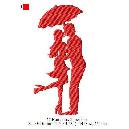 Romantic Couple With Umbrella Silhouette Valentines Day Machine Embroidery Digitized Design Files