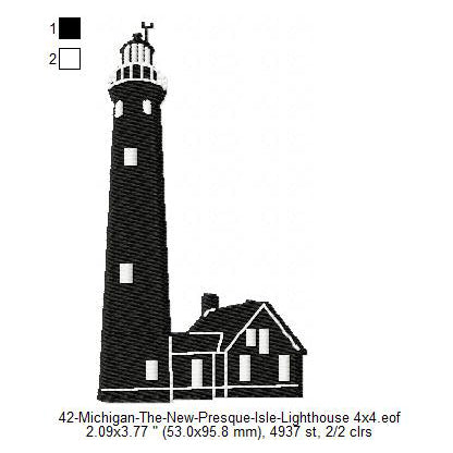 Michigan The New Presque Isle Lighthouse Silhouette Machine Embroidery Digitized Design Files