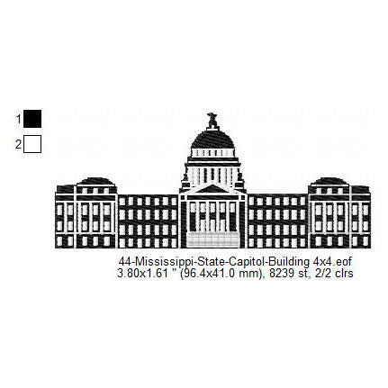 Mississippi State Capitol Building Silhouette Machine Embroidery Digitized Design Files