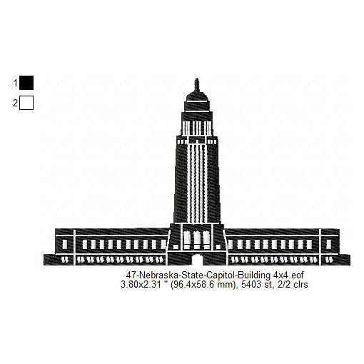Nebraska State Capitol Building Silhouette Machine Embroidery Digitized Design Files