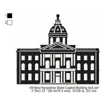 New Hampshire State Capitol Building Silhouette Machine Embroidery Digitized Design Files