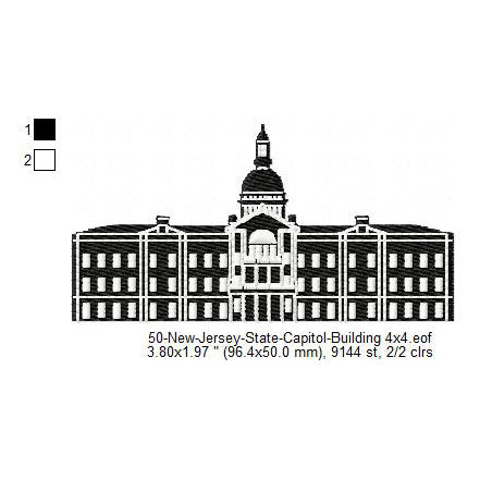 New Jersey State Capitol Building Silhouette Machine Embroidery Digitized Design Files