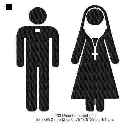 Preacher Nun Silhouette Machine Embroidery Digitized Design Files