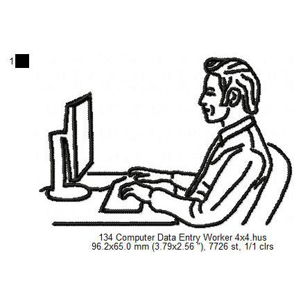 Computer Operator Programmer Line Art Machine Embroidery Digitized Design Files
