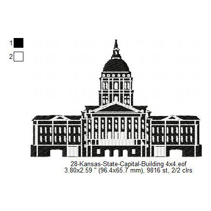 Kansas State Capital Building Silhouette Machine Embroidery Digitized Design Files