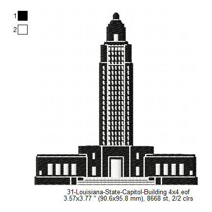 Louisiana State Capitol Building Silhouette Machine Embroidery Digitized Design Files