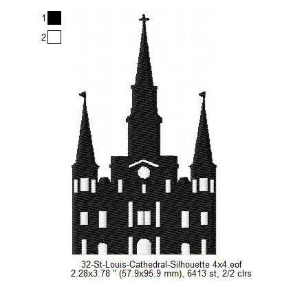 St Louis Cathedral Silhouette Machine Embroidery Digitized Design Files
