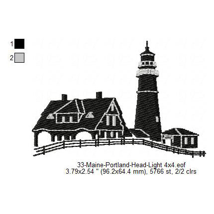 Maine Portland Head Silhouette Machine Embroidery Digitized Design Files