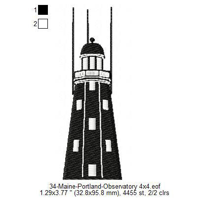 Maine Portland Observatory Silhouette Machine Embroidery Digitized Design Files