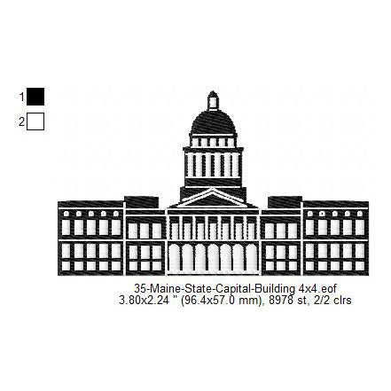 Maine State Capital Building Silhouette Machine Embroidery Digitized Design Files