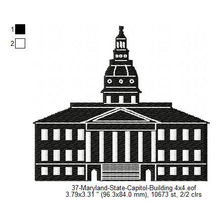 Maryland State Capital Building Silhouette Machine Embroidery Digitized Design Files