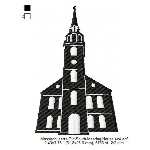 Massachusetts Old South Meeting House Silhouette Machine Embroidery Digitized Design Files