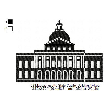 Massachusetts State Capitol Building Silhouette Machine Embroidery Digitized Design Files