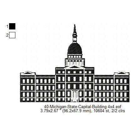 Michigan State Capital Building Silhouette Machine Embroidery Digitized Design Files