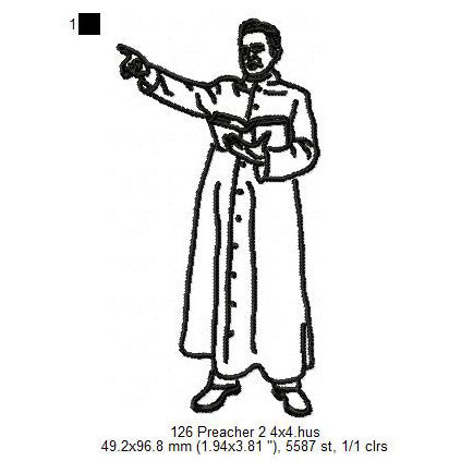 Preacher Line Art Machine Embroidery Digitized Design Files