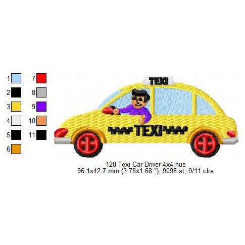 Taxi Car Driver Machine Embroidery Digitized Design Files