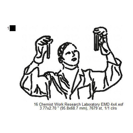 Chemist Laboratory Researcher Line Art Machine Embroidery Digitized Design Files