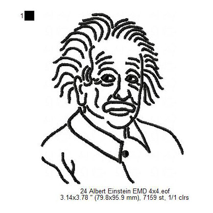 Albert Einstein Scientist Line Art Machine Embroidery Digitized Design Files