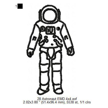 Astronaut Line Art Machine Embroidery Digitized Design Files