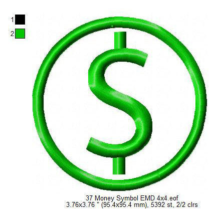 Dollar Money Symbol Line Art Machine Embroidery Digitized Design Files