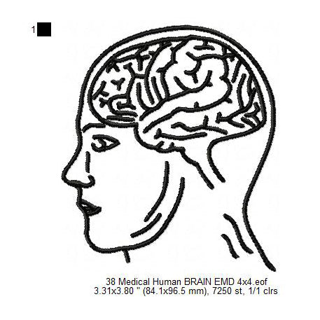 Human Brain Medical Line Art Machine Embroidery Digitized Design Files