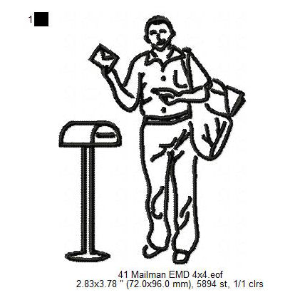 Mailman Line Art Machine Embroidery Digitized Design Files