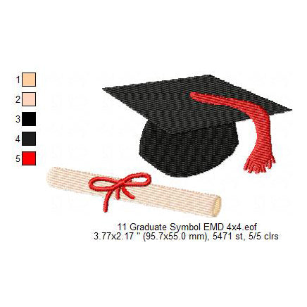 Graduation Hat With Tassel Diploma With Red Ribbon Machine Embroidery Digitized Design Files