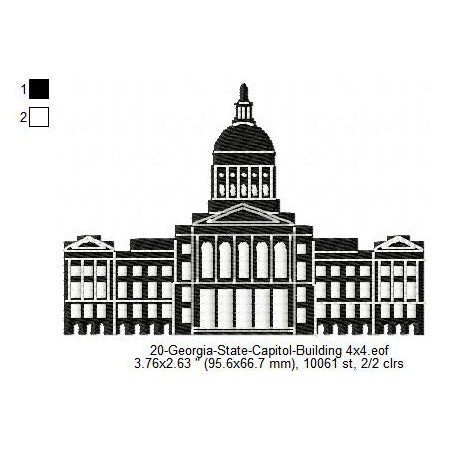 Georgia State Capitol Building Silhouette Machine Embroidery Digitized Design Files