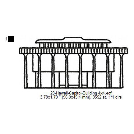 Hawaii Capitol Building Silhouette Machine Embroidery Digitized Design Files
