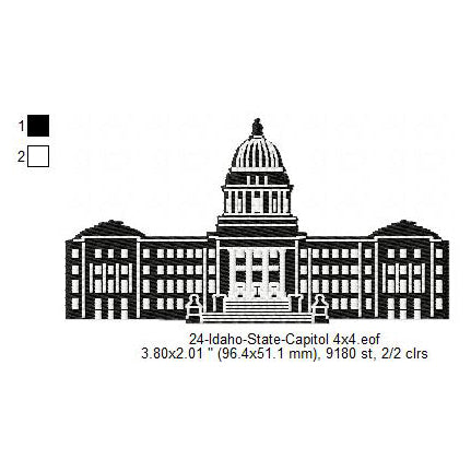 Idaho State Capitol Building Silhouette Machine Embroidery Digitized Design Files