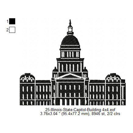 Illinois State Capitol Building Silhouette Machine Embroidery Digitized Design Files