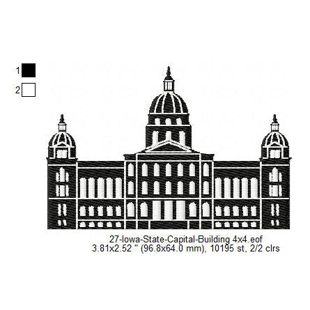 Iowa State Capital Building Silhouette Machine Embroidery Digitized Design Files