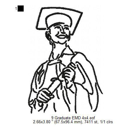 Graduation Ceremony Student Line Art Silhouette Machine Embroidery Digitized Design Files