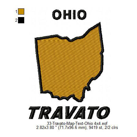 Travato Ohio Map State Designs Machine Embroidery Digitized Design Files