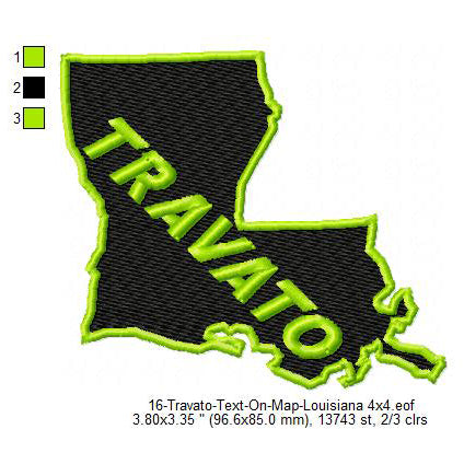 Travato Louisiana State Map Designs Machine Embroidery Digitized Design Files