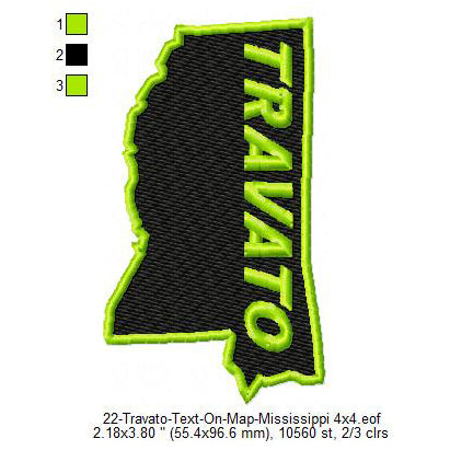 Travato Mississippi State Map Designs Machine Embroidery Digitized Design Files