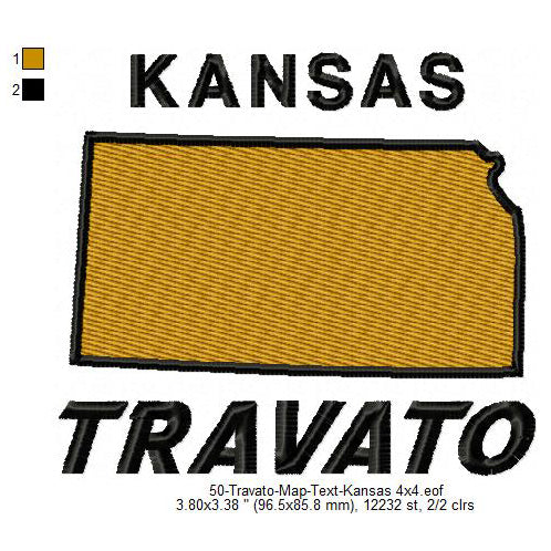 Travato Kansas State Map Designs Machine Embroidery Digitized Design Files