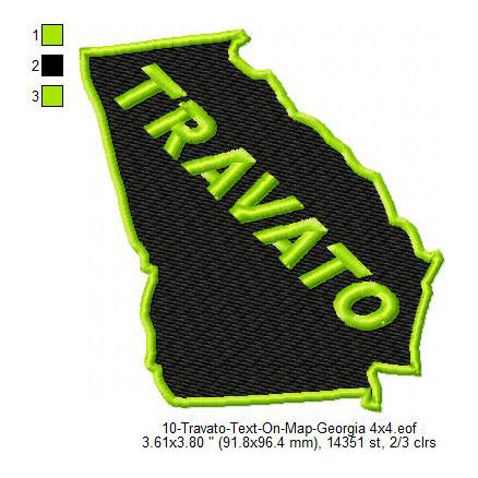 Travato Georgia State Map Designs Machine Embroidery Digitized Design Files