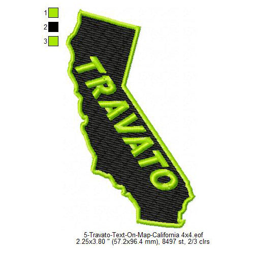 Travato California State Map Designs Machine Embroidery Digitized Design Files